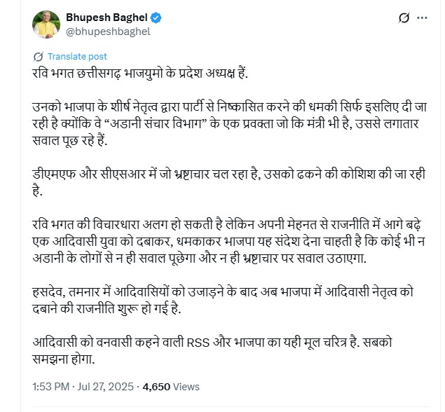 - भूपेश बघेल ने भी सोशल मीडिया में किया पोस्ट