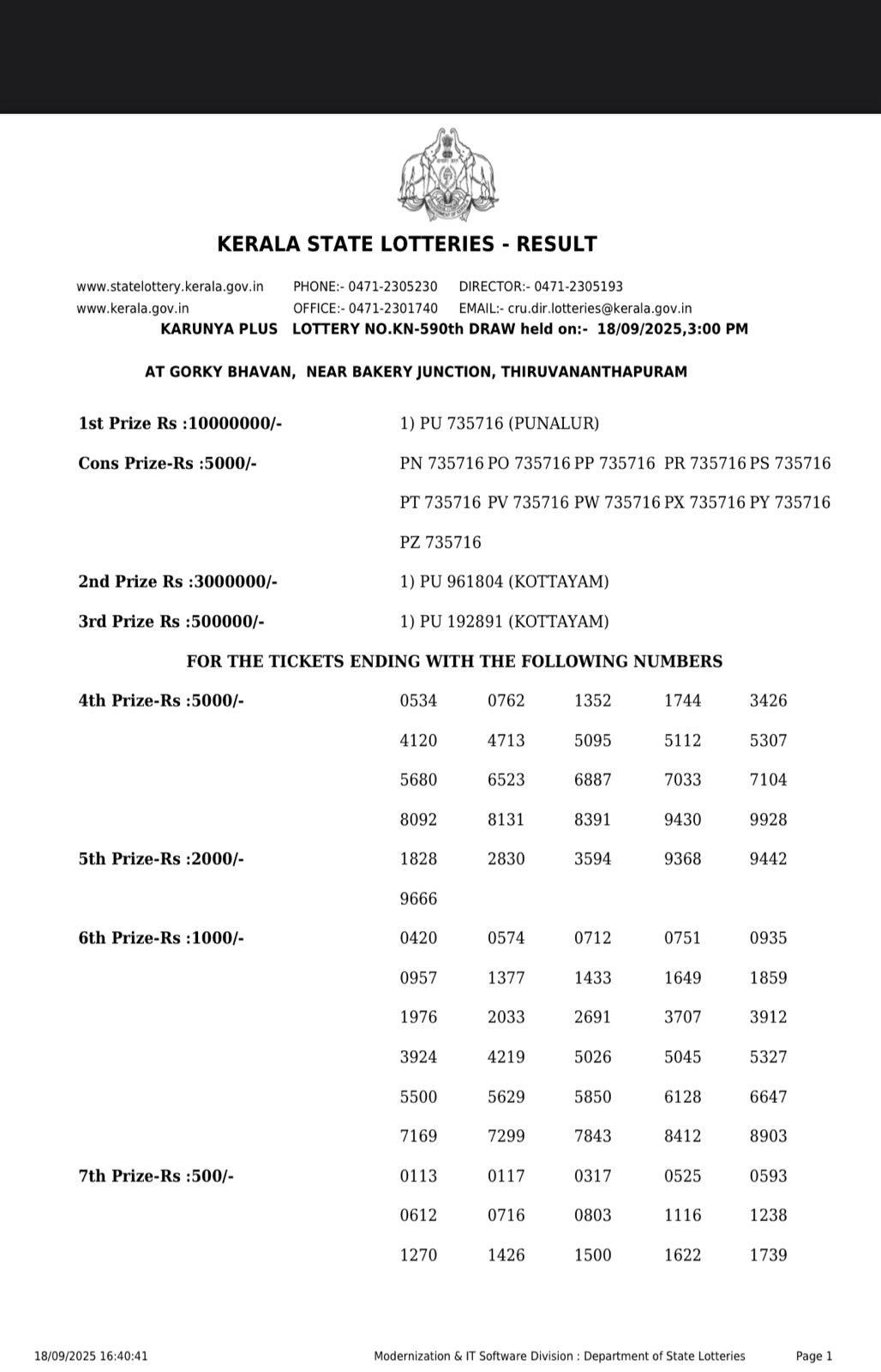 (LIVE) Lottery Sambad Kerala Result Today 18-09-2025: केरल राज्य लॉटरी की स्थापना 1967 में हुई थी, जिससे यह भारत का पहला राज्य बन गया जिसने लॉटरी विभाग शुरू किया गया। ये विभाग 7 साप्ताहिक लॉटरी और 6 बंपर लॉटरी प्रतिवर्ष आयोजित करता है, जिससे राज्य की विकास परियोजनाओं के लिए महत्वपूर्ण राजस्व प्राप्त होता है और हज़ारों लॉटरी एजेंटों को रोज़गार भी मिलता है।