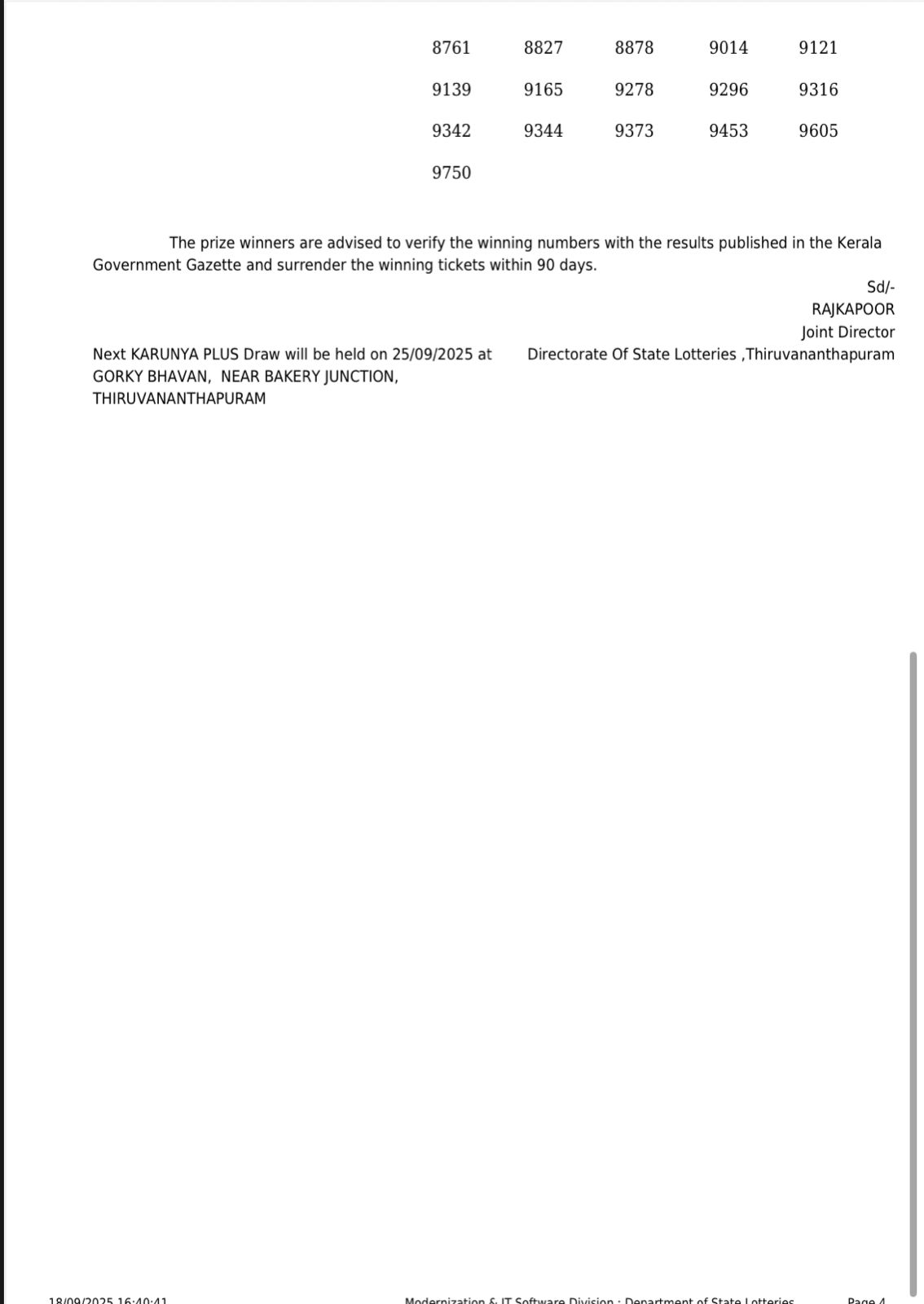 |KERALA LOTTERY | LIVE LOTTERY RESULT TODAY 18/09/2025 |