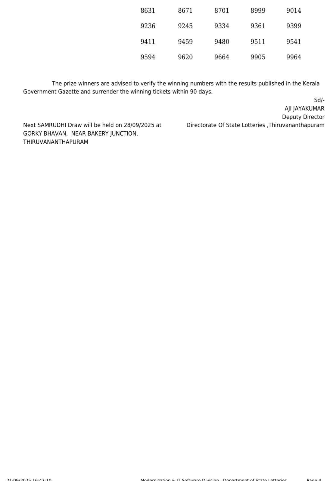 | KERALA LOTTERY | LIVE LOTTERY RESULT TODAY 21/09/2025 |