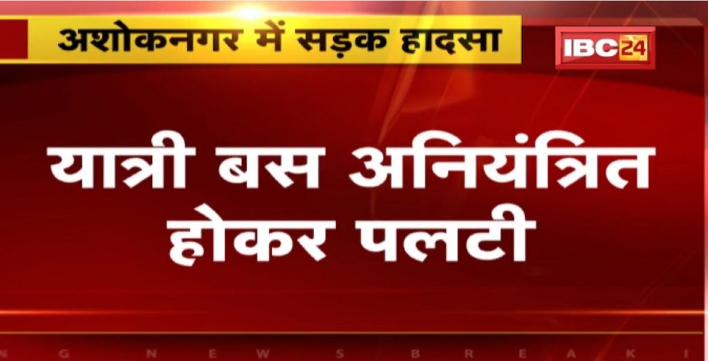 Ashoknagar Road Accident : अनियंत्रित होकर पलटी यात्री बस। हादसे में 18 यात्री घायल