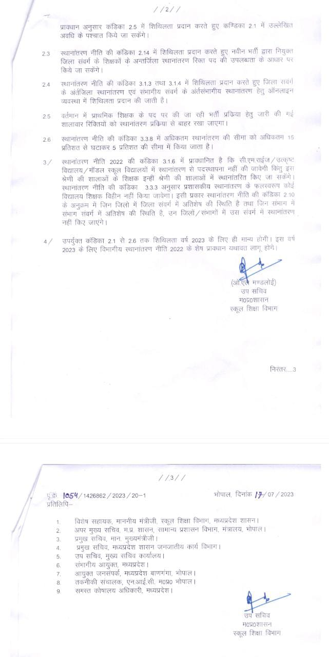 Teachers transfer news: भोपाल। मध्य प्रदेश के प्राथमिक, सहायक और प्रयोगशाला शिक्षकों के ट्रांसफर से जुड़ी बड़ी खबर सामने आई है। प्रदेश में 1 से 10 अगस्त तक शिक्षकों के ट्रांसफर होंगे। अतिशेष शिक्षक वाले जिलों और संभाग में इस बार स्थानांतरण नहीं हो पाएगा। इस संबंध में मध्य प्रदेश स्कूल शिक्षा विभाग आदेश जारी कर दिया है। इस बार सिर्फ 5% ही ट्रांसफर होंगे इससे पहले 15% तक ट्रांसफर होते थे।