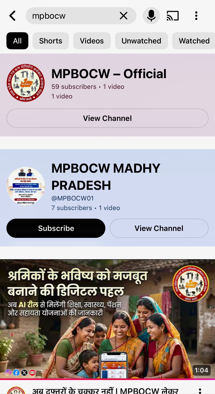 MPBOCW Official Channel: भोपाल: मध्यप्रदेश भवन एवं अन्य निर्माण कर्मकार कल्याण मंडल ने बताया है कि सोशल मीडिया पर विभाग के नाम से एक फर्जी YouTube चैनल बनाया गया है। यह चैनल विभाग की पहचान का दुरुपयोग कर रहा है और MPBOCW द्वारा जारी किए गए कई आधिकारिक वीडियो को बिना अनुमति के कॉपी-पेस्ट कर अपने चैनल पर अपलोड कर रहा है। इससे गलत और भ्रामक जानकारी फैलने की आशंका है।