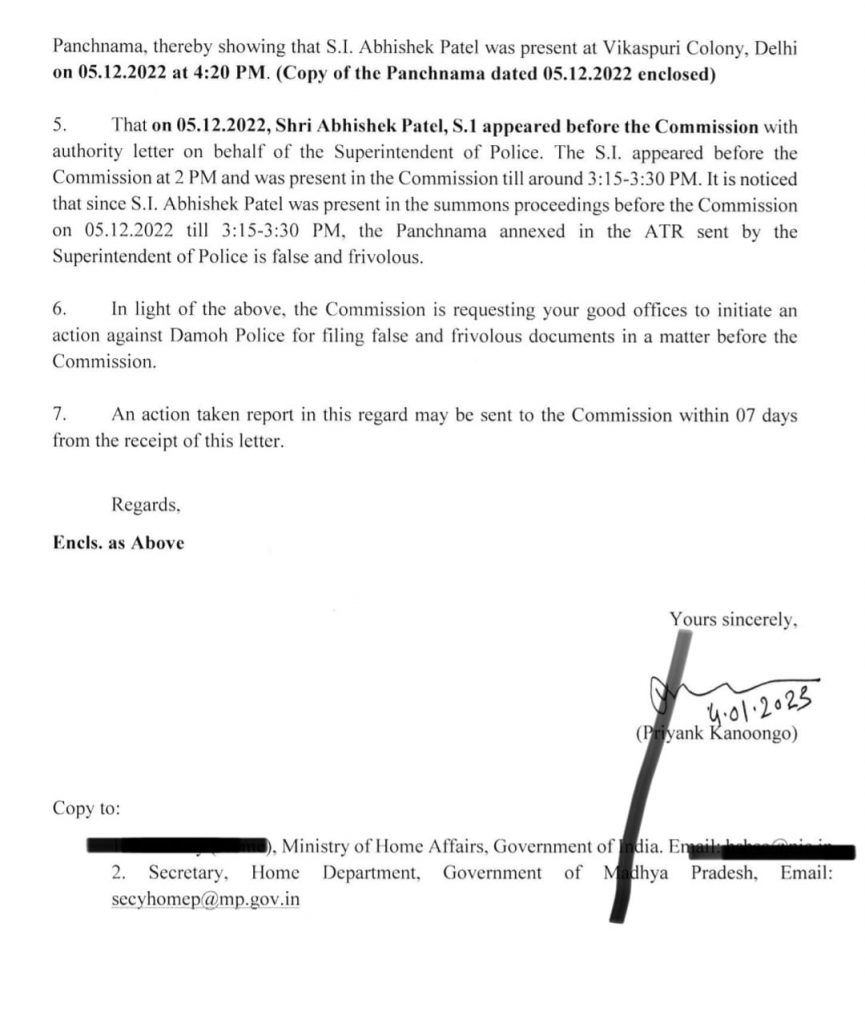 Damoh dharmantaran latest update: भोपाल। दमोह धर्मांतरण मामले में नया मोड़ सामने आया है। राष्ट्रीय बाल आयोग संरक्षण आयोग ने डीजीपी सुधीर सक्सेना को पत्र लिखा है। साथ ही नोटिस के बाद पेश किए दस्तावेजों को भी सिरे से आयोग ने नकार दिया है। मामले पर दोषी पुलिस अधिकारियों के खिलाफ तत्काल कार्रवाई का निर्देश भी पुलिस प्रशासन को दिया गया है। आयोग ने पत्र में लिखा कि मिशनरी संस्था द्वारा धर्मांतरण के मामले में एसआई अभिषेक पटेल पेश हुए। लेकिन तथ्य परख जांच और सबूतों को छोड़ गलत दस्तावेज पेश किए गए। जबकि मौका निरीक्षण के दौरान आयोग ने परिस्थियां और साक्ष्य कुछ और ही पाए थे।