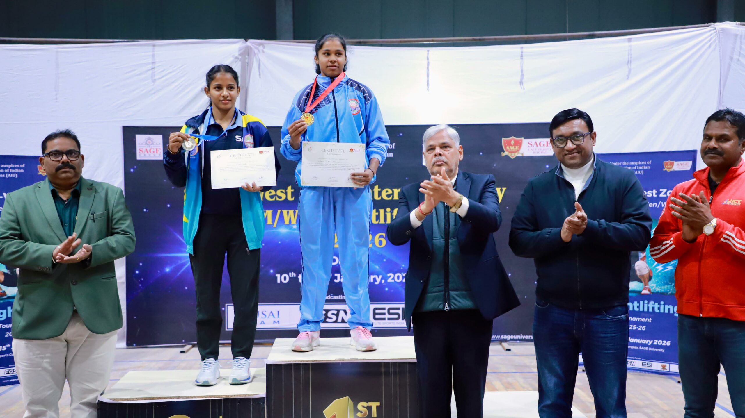 Sage University Bhopal : सेज यूनिवर्सिटी भोपाल में आयोजित एआईयू दक्षिण-पश्चिम भारोत्तोलन प्रतियोगिता सफल रही। महिला वर्ग के विजेताओं का सम्मान किया गया और पुरुष वर्ग के मुकाबले जारी हैं।