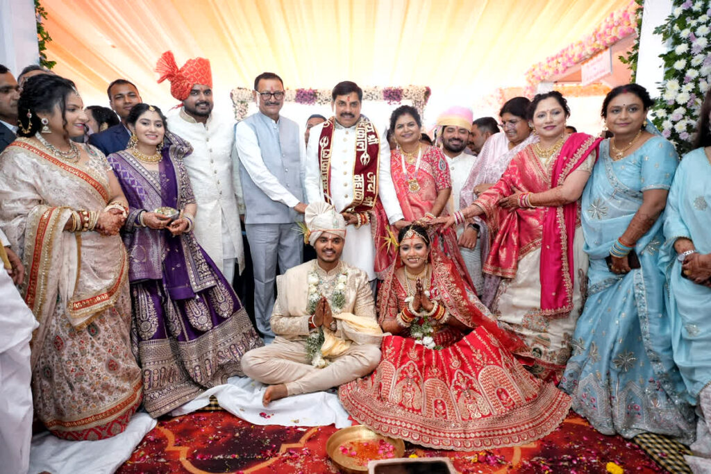 CM Mohan Yadav Son Abhimanyu Wedding उज्जैन में रविवार को सामूहिक विवाह समारोह में मुख्यमंत्री डॉ. यादव के पुत्र चिरंजीव डॉ. अभिमन्यु का डॉ. इशिता के साथ विवाह यादगार बन गया। एक ही पंडाल में मुख्यमंत्री डॉ. यादव के पुत्र के साथ जन-सामान्य के पुत्र-पुत्रियों के विवाह ने अद्भुत आत्मीयता और समानता के भाव का संचार किया। इस अवसर पर राज्यपाल मंगुभाई पटेल ने समस्त नव-दंपतियों को बधाई दी। राज्यपाल पटेल ने कहा कि मुख्यमंत्री डॉ. यादव ने सामाजिक समरसता का श्रेष्ठ उदाहरण प्रस्तुत किया है।