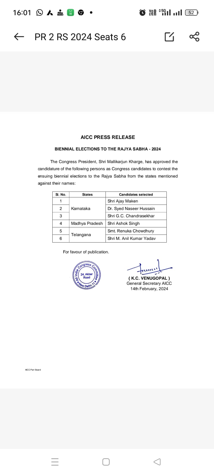 Congress Ashok Singh Rajya Sabha candidate: मप्र में BJP के राज्यसभा उम्मीदवारों के ऐलान के बाद कांग्रेस ने भी प्रत्याशी का ऐलान कर दिया है।
