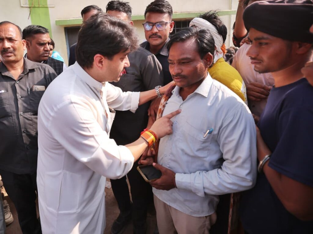 मृतका के परिजन से मिले सिंधिया , क्लर्क महेंद्र सिंह जाटव को किया तत्काल निलंबित
