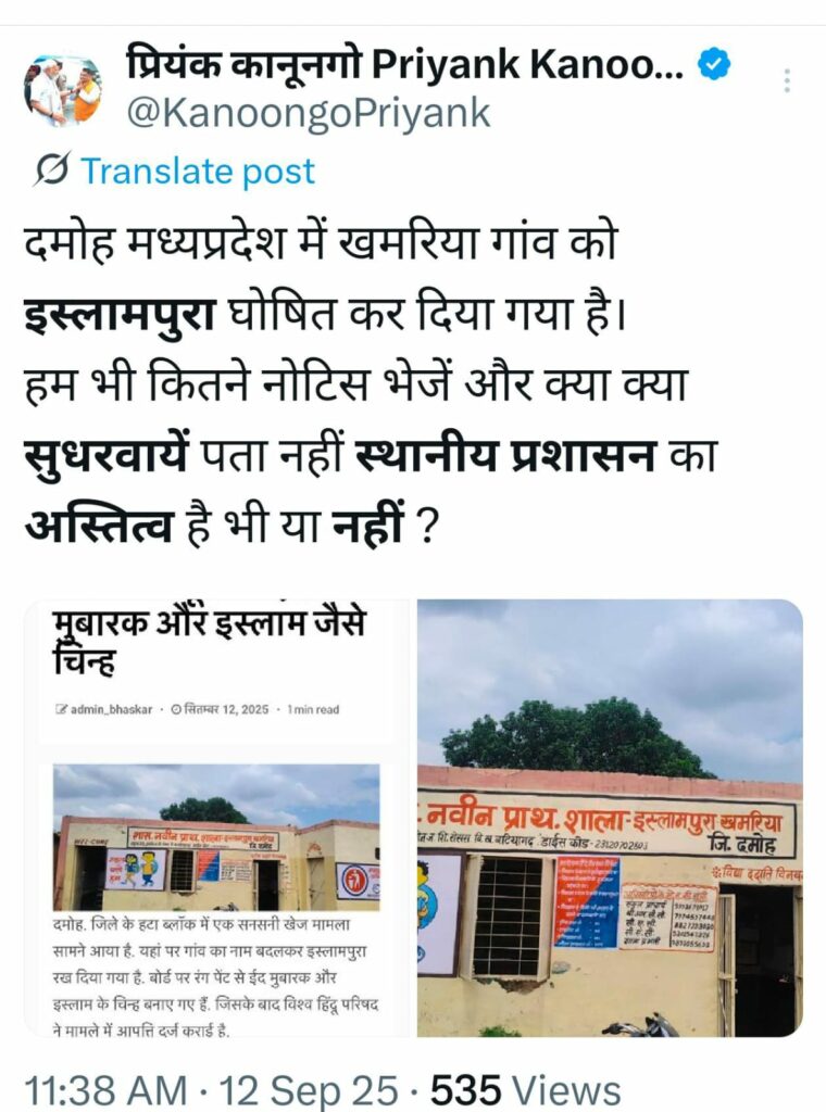 Hatta News: शासकीय रिकॉर्ड में इस टोले के नाम का कोई उल्लेख नहीं है इसके बावजूद इसे ‘इस्लामपुरा’ नाम देने पर भी हिन्दू संगठनों ने आपत्ति जताई है और कड़ी कार्यवाही की मांग करते हुए आंदोलन की चेतावनी दी है। मामले में NCPCR के सदस्य प्रियंक कानूनगो ने X पर पोस्ट कर प्रशासन की मंशा पर सवाल खड़े किए हैं।