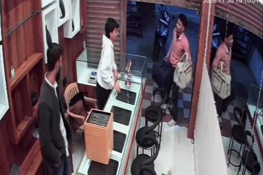 ,मंडलाः Mandla News जिले के कटरा क्षेत्र में ज्वेलरी दुकान में हुई सनसनीखेज लूट की वारदात का एक नया सीसीटीवी फुटेज सामने आया है, जिसने पूरे घटनाक्रम की तस्वीर और भी स्पष्ट कर दी है। वीडियो में दिख रहा है कि दुकान बंद होने से ठीक पहले दुकानदार ज्वेलरी से भरा बैग अपने कर्मचारी को सौंपता है, जिसे गाड़ी में रखने के लिए भेजा जाता है।