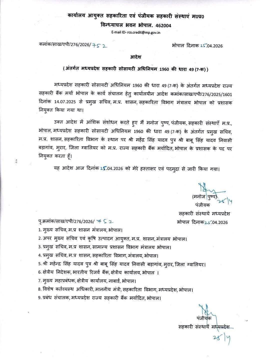 MP Nigam Mandal Niyukti New List: कई विकास प्राधिकरणों में नई नियुक्तियां, इन नेताओं को मिली बड़ी जिम्मेदारी, महेंद्र सिंह यादव बने अपेक्स बैंक के अध्यक्ष