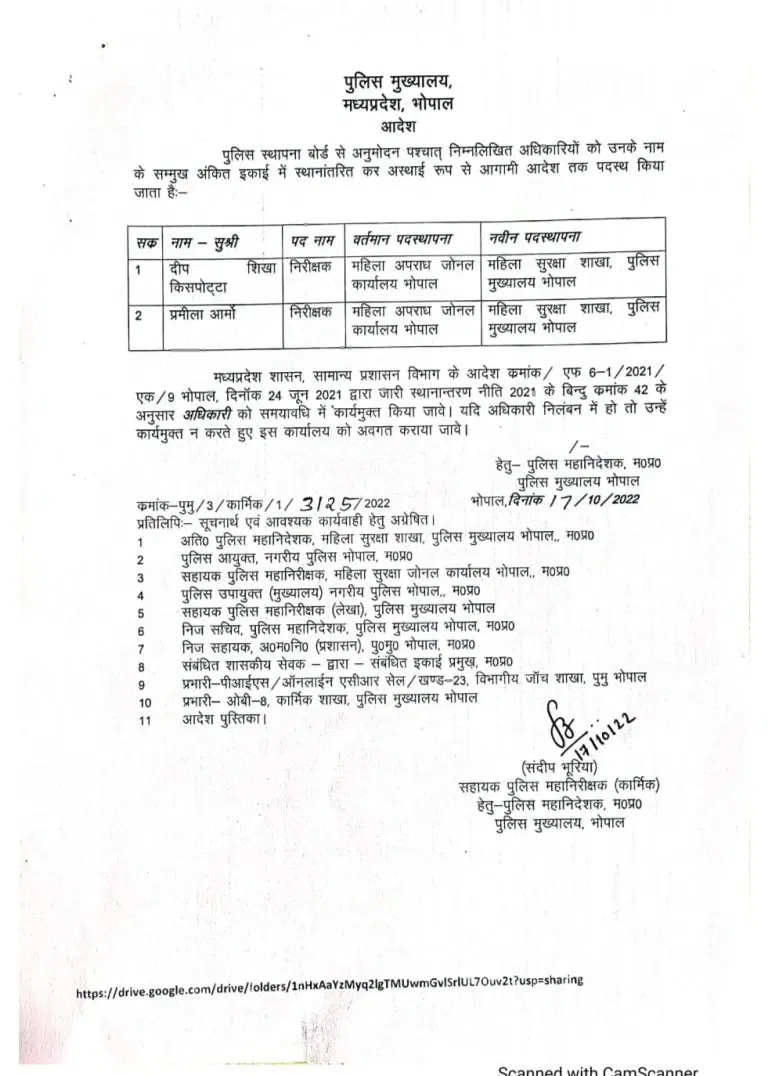 MP Police Transfer : पुलिस विभाग में हुए तबादले, लिस्ट जारी, जानें किसे मिली कौन-सी जगह