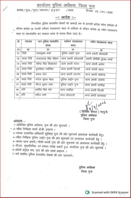 - गुना जिले में एक साथ 9 थाना प्रभारियों का तबादला