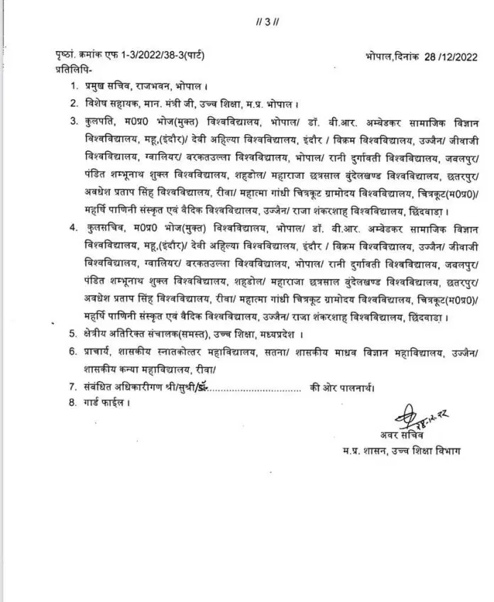 Registrar Deputy Registrar and Professor Transfer in MP : भोपाल। प्रदेश में तबादलों का दौर जारी है। प्रतिदिन कई अधिकारियों के तबादले किए जा रहे है। इसी बीच उच्च शिक्षा विभाग में बड़े स्तर तबादले किए गए है। जिसके लिए आदेश जारी कर दिया गया है। आदेश अनुसार उप कुलसचिव, प्राध्यापक और सह प्राध्यापकों के तबादले किए गए हैं।