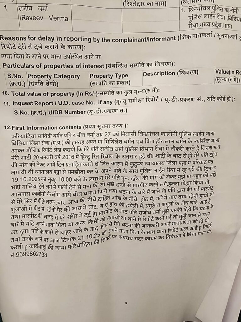 - राजीव वर्मा के खिलाफ दहेज प्रताड़ना और मारपीट की FIR दर्ज