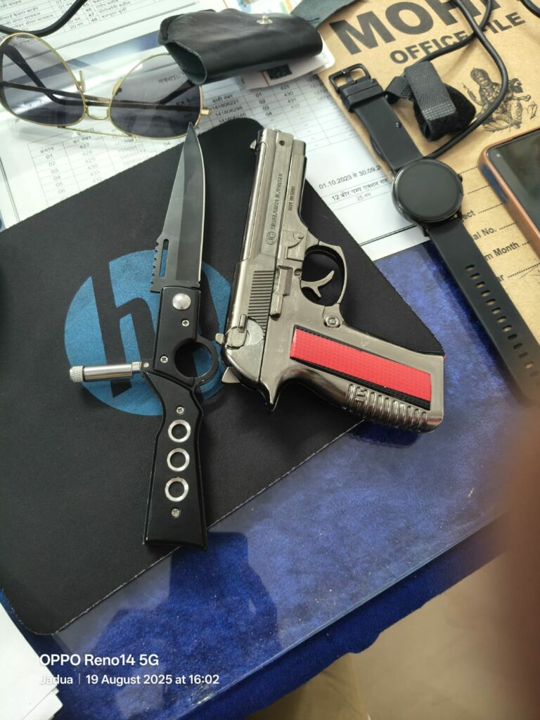 Rewa News: परेशान होकर युवती ने परिजनों के साथ थाने पहुंचकर शिकायत दर्ज कराई। पुलिस ने योजना बनाकर युवती के ज़रिए आरोपी को मिलने के लिए बुलाया। जैसे ही पुलिस उसे पकड़ने पहुंची, आरोपी ने नकली पिस्टल निकालकर पुलिस पर तान दी। कुछ देर असहज स्थिति बनी रही लेकिन घेराबंदी कर पुलिस ने आरोपी को काबू में कर लिया। पुलिस ने आरोपी के पास से नकली पिस्टल, चाकू, फर्जी आधार कार्ड, फर्जी पुलिस आईडी कार्ड और बाइक बरामद की है।