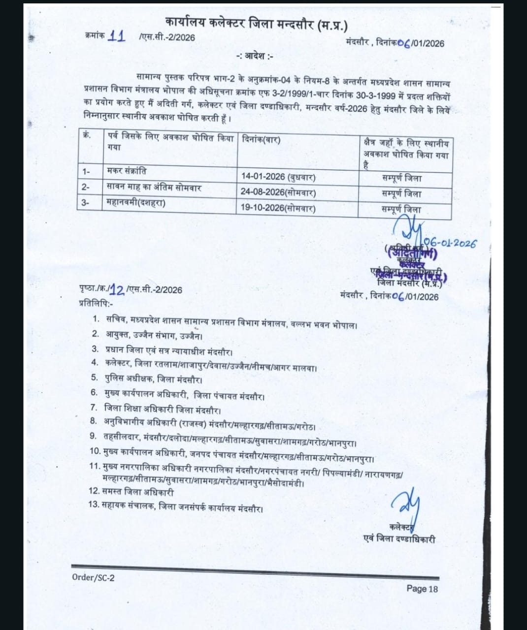 School Closed Order Issued in Mandsaur : 13 जनवरी 2026 तक अवकाश