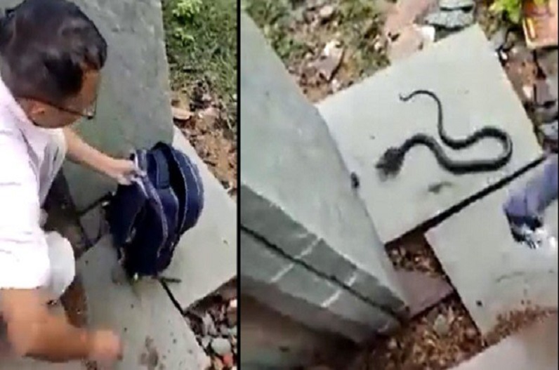 जब एक अध्यापक ने रजक के बस्ते को खेल के मैदान में खाली किया तो उसमें से एक सांप निकला, जिससे छात्रों और शिक्षकों के बीच हड़कंप मच गया।