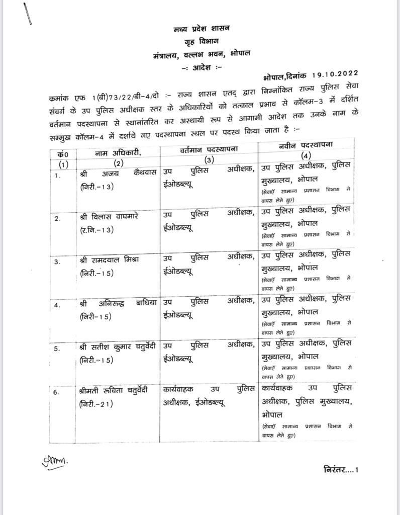 दिवाली से पहले बड़ा फेरबदल, एक साथ बदले गए 8 DSP, गृह विभाग ने जारी किया आदेश