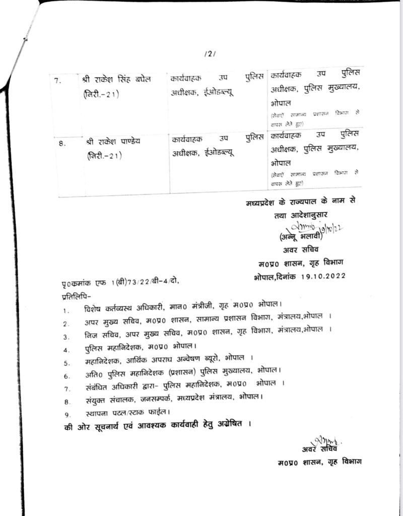 दिवाली से पहले बड़ा फेरबदल, एक साथ बदले गए 8 DSP : Transfer order of 8 DSP issued before Diwali, see full list
