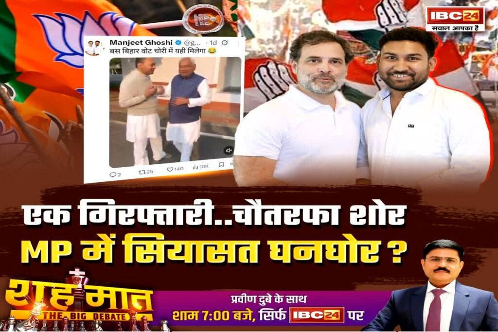 भोपाल: MP Politics नरसिंहपुर से कांग्रेस के एक कार्यकर्ता की गिरफ्तारी से एमपी की सियासत में भूचाल आ गया है। दिल्ली पुलिस ने नरसिंहपुर के तेंदूखेड़ा से मंजीत घोसी नाम के कांग्रेस कार्यकर्ता को गिरफ्तार किया है जो सोशल मीडिया प्लेटफॉर्म्स पर भाजपा सरकारों के खिलाफ ख़ासा एक्टिव था। घोसी ने बिहार चुनाव और एसआईआर से जुड़े वीडियो पोस्ट किए थे जिनमें उसने बीजेपी पर वोट चोरी का आरोप लगाया था। घोसी के खिलाफ जब देश की एकता-अखंडता को खतरे में डालने का अपराध दर्ज कर गिरफ्तारी की गई है तो कांग्रेस इसे तानाशाही बताकर मैदान में आ गई है तो भाजपा, कानून को अपना काम करने देने की नसीहत दे रही है।