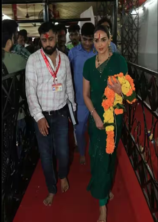 - एक्ट्रेस ईशा देओल नंगे पैर पहुंचीं और गणपति बप्पा की पूजा-अर्चना की. अभिनेत्री हरे रंग की साड़ी में बहुत सुंदर लग रही थी, जिसे उन्होंने पारंपरिक महाराष्ट्रीयन नथ के साथ जोड़ा था। उन्होंने कुछ पुलिस अधिकारियों के साथ तस्वीरें भी खिंचवाईं।