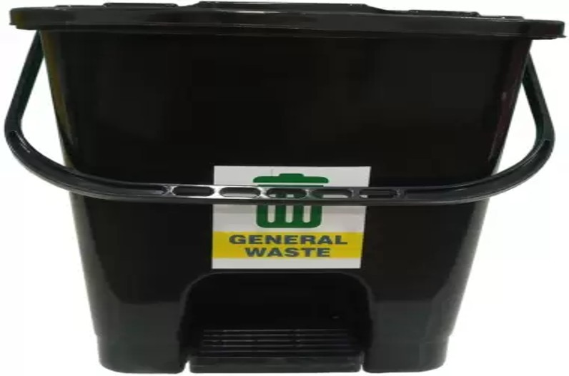 - काला :- इस कूड़ेदान का उपयोग गैर संक्रमित कचरे जैसे सैनिटरी नैपकिन, डायपर, ब्लेड, पट्टियाँ, सीएफएल, ट्यूब लाइट, प्रिंटर कार्ट्रिज और बैटरी आदि के प्रबंधन के लिए किया जाता है।