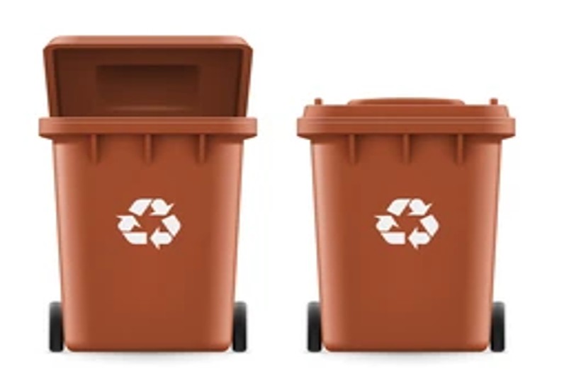 - ब्राउन बिन बगीचे के कचरे और भोजन की बर्बादी के लिए है