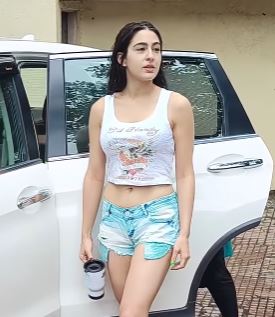 सामने आई सारा अली खान की फोटोज में उनके द्वारा पहनी छोटी निक्कर सभी का ध्यान खींच रही है। लोग उनके ओवरऑल लुक को काफी पसंद कर रहे है।