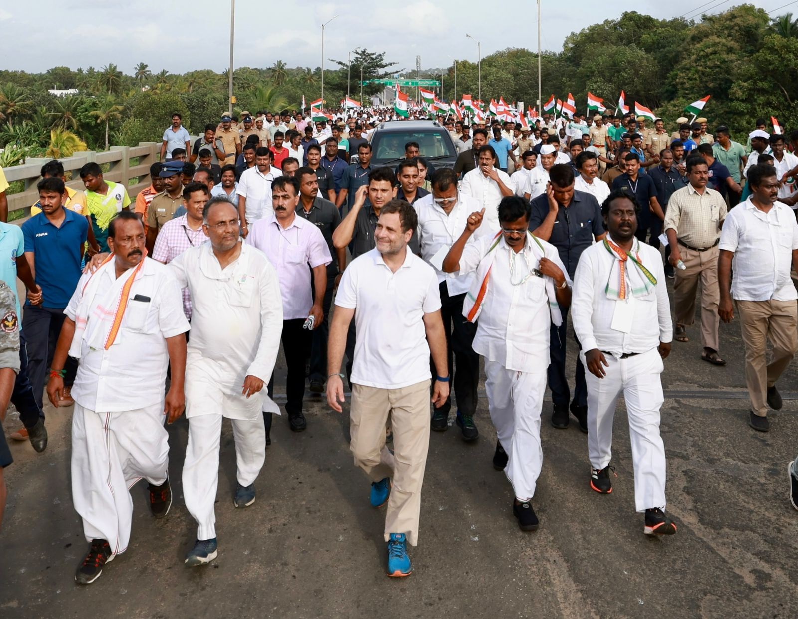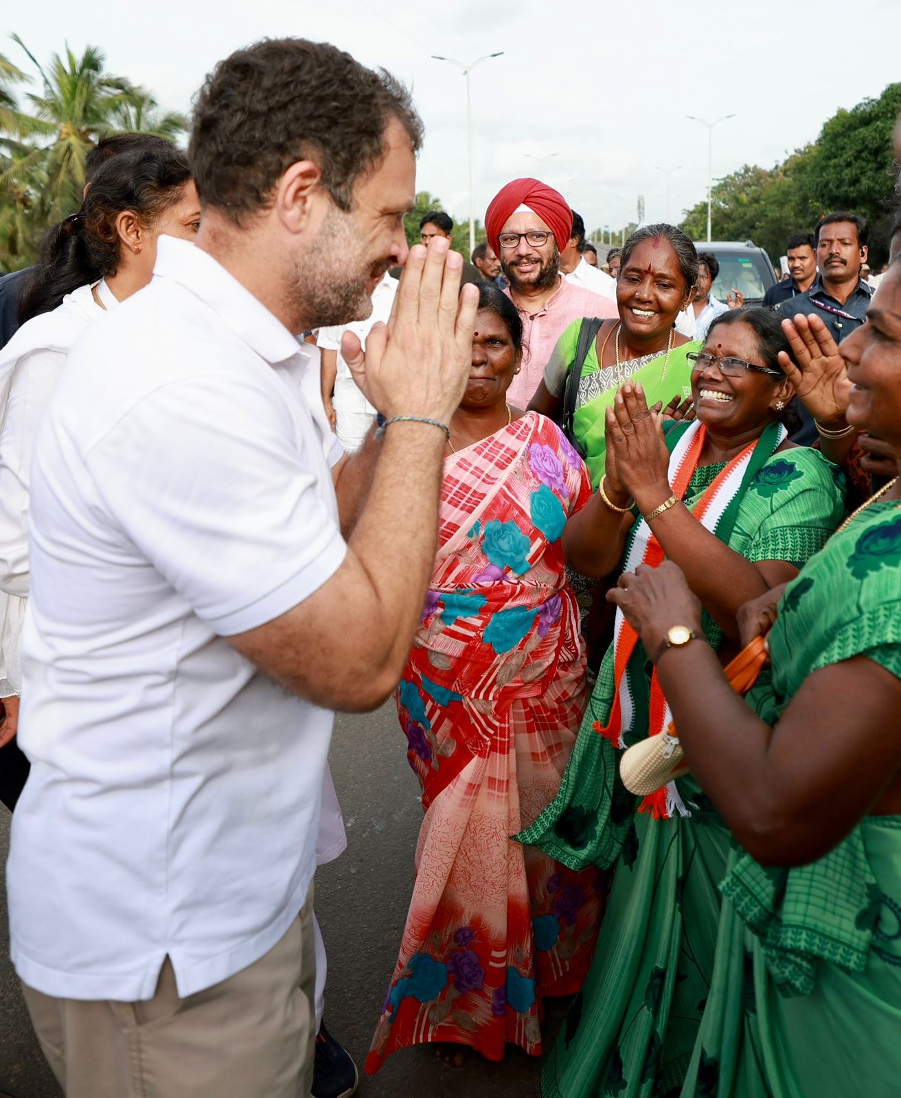नई दिल्ली : ‘Bharat Jodo Yatra’ : पार्टी में चल रहे इस्तीफों के दौर के बीच कांग्रेस ने ‘भारत जोड़ो यात्रा’ शुरू की है। यह यात्रा 3750 किलोमीटर की दुरी तय करते हुए करीब 12 राज्यों से गुजरेगी। राहुल गांधी ने 8 सितंबर को कन्याकुमारी में तिरंगे को सलामी देकर उअतरा की शुरुआत की थी। इस यात्रा को लेकर जबरदस्त राजनीति शुरू हो चुकी है। यात्रा के दौरान राहुल गांधी के कपड़ो और यात्रा के साथ चलने वाले घरनुमा कंटेनरों के साथ साथ अन्य मुद्दों पर भी राजनीती गरमाई हुई है। इन सब के बीच भारत जोड़ो यात्रा से राहुल गांधी की कुछ ऐसी तस्वीरें सामने आई है जो शायद आपका दिल जीत ले…