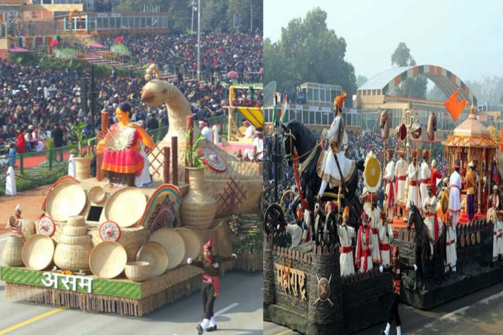 असम, त्रिपुरा और महाराष्ट्र की झांकियां