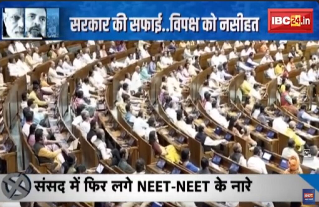लाखों छात्रों के भविष्य से जुड़े NEET पेपर लीक केस में पहली बार सरकार का रुख संसद में सुनाई दिया। राष्ट्रपति मुर्मू ने अपने अभिभाषण के दौरान नीट पेपर लीक का जिक्र किया। इस दौरान विपक्षी दलों ने जमकर शोर मचाया। नीट-नीट के नारे भी लगाए। राष्ट्रपति मुर्मूं ने जहां परीक्षा की पारदर्शियों को लेकर सरकार के कदमों की जानकारी दी। वहीं विपक्षी पार्टियों को दलगत राजनीति से ऊपर उठने की नसीहत दी।