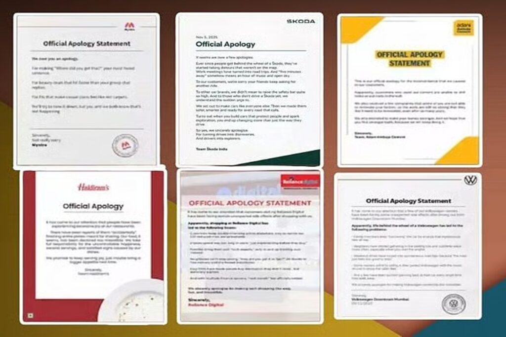 Sorry Not Sorry Trend: इस ‘माफी की लहर’ में आधी इंडस्ट्री शामिल हो चुकी है। स्कोडा, टी-सीरीज, वोक्सवैगन डाउनटाउन मुंबई, रिलायंस डिजिटल, केवेंटर्स, बनाना लीफ, पीवीआर-आइनॉक्स, कैशिफाई और गार्नियर ने इस ट्रेंड को अपनाया है। Volkswagen India ने कहा कि हमें खेद है कि हमारी गाड़ियां इतनी पसंद की जा रही हैं कि लोग उन्हें बेच नहीं पा रहे। Keventers ने इंस्टाग्राम पर पोस्ट शेयर कर लिखा, ‘माफी चाहते हैं, हमारे मिल्कशेक इतने टेस्टी हैं कि लोग बार-बार लौट आते हैं।’