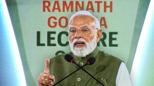 17 नवंबर 2025 को प्रधानमंत्री नरेन्द्र मोदी ने नई दिल्ली में रामनाथ गोयनका व्याख्यान में भी माओवादी आतंक की समाप्ति का ज़िक्र किया। अर्बन नक्सलियों और कांग्रेस पर निशाना साधते हुए उन्होंने कहा कि – “पूरे देश में नक्सलवाद-माओवादी आतंक का दायरा बहुत तेजी से सिमट रहा है, लेकिन कांग्रेस में ये उतना ही सक्रिय होता जा रहा था। आप भी जानते हैं, बीते पांच दशकों तक देश का करीब-करीब हर बड़ा राज्य, माओवादी आतंक की चपेट में, चपेट में रहा। लेकिन ये देश का दुर्भाग्य था कि कांग्रेस भारत के संविधान को नकारने वाले माओवादी आतंक को पालती-पोसती रही और सिर्फ दूर-दराज के क्षेत्रों में जंगलों में ही नहीं, कांग्रेस ने शहरों में भी नक्सलवाद की जड़ों को खाद-पानी दिया। कांग्रेस ने बड़ी-बड़ी संस्थाओं में अर्बन नक्सलियों को स्थापित किया है।”