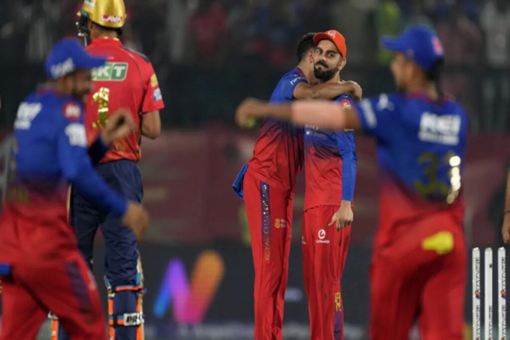 यश दयाल और लॉकी फर्ग्यूसन पर जॉनी बेयरस्टो (27 रन) और रोसोऊ ने क्रमश: 16 और 14 रन बनाकर पंजाब किंग्स को छह ओवर में दो विकेट पर 75 रन तक पहुंचा दिया। फर्ग्यूसन ने बेयरस्टो को आउट किया जिसके बाद रोसोऊ ने ग्रीन पर दो चौके और एक छक्के से 21 गेंद में अपना अर्धशतक पूरा कर दिया। जितेश शर्मा को फिर कर्ण शर्मा ने आउट किया और स्वप्निल ने लियाम लिविंगस्टोन (शून्य) को पवेलियन भेजा जिससे 12वें ओवर में टीम का स्कोर पांच विकेट पर 126 रन था।इन झटकों के बाद टीम उबर नहीं सकी। शशांक सिंह (37 रन), सैम करन (22 रन) और आशुतोष्ज्ञ शर्मा (08) के डगआउट में पहुंचने के बाद उम्मीद खत्म हो गयी। इससे पहले पंजाब किंग्स के क्षेत्ररक्षकों ने पारी के दौरान कई कैच छोड़े जिससे बल्लेबाजी का न्योता मिलने के बाद कोहली और पाटीदार ने जीवनदान का पूरा फायदा उठाते हुए 32 गेंद में 72 रन ठोक डाले।