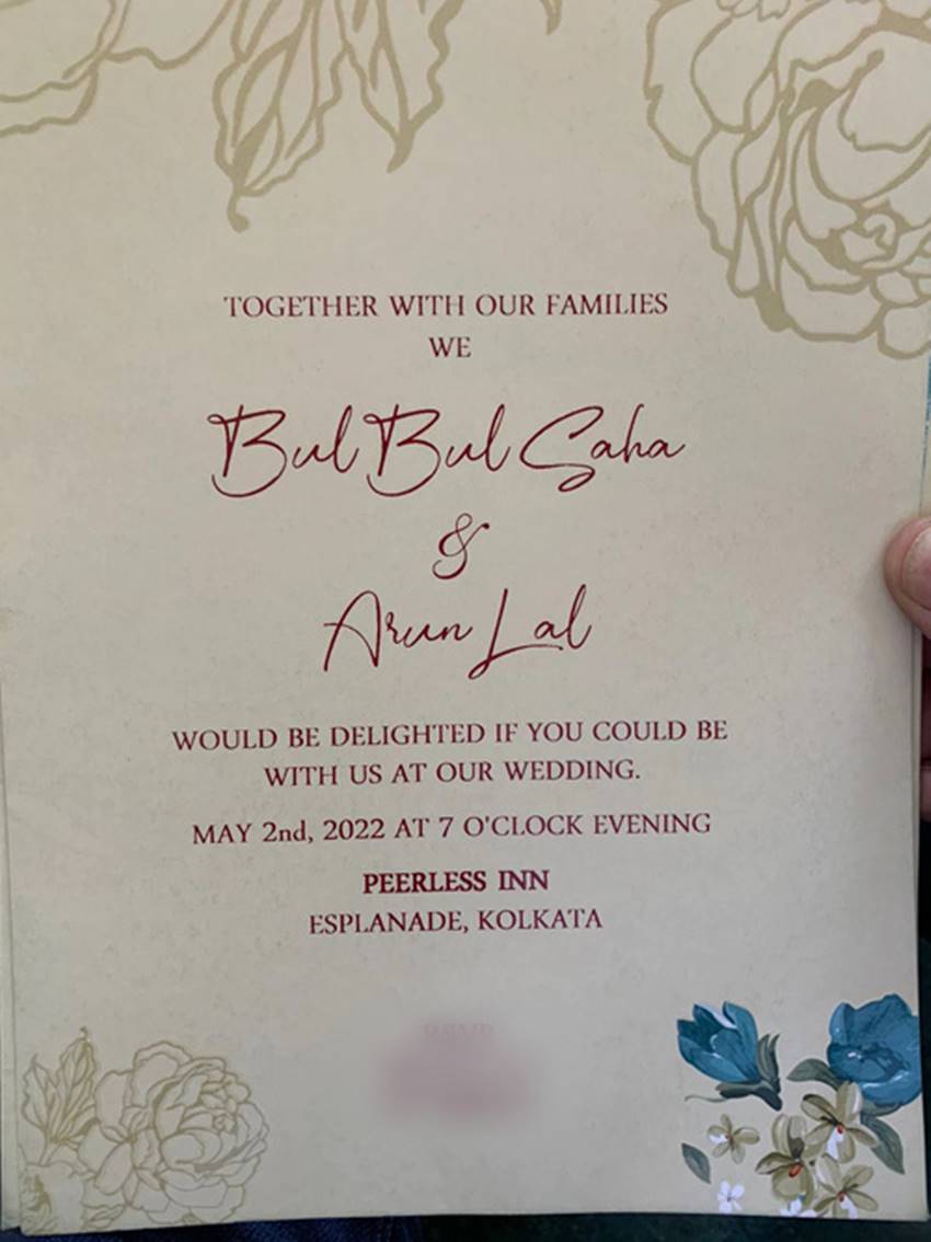 रिपोर्ट्स के मुताबिक, अरुण लाल ने शादी के कार्ड छपवा लिए हैं। शादी का कार्ड सोशल मीडिया पर भी वायरल है। सोशल मीडिया पर वायरल कार्ड के मुताबिक, दोनों की शादी 2 मई को कोलकाता के पीयरलेस इन होटल में होनी है। शादी के बाद एक शानदार रिसेप्शन भी देने की तैयारी है। बुलबुल पेशे से शिक्षिका हैं।