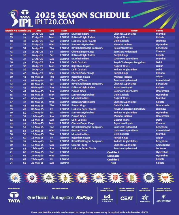 - IPL के 18वें सीजन यानी आईपीएल 2025 के शेड्यूल का एलान कर दिया गया है।