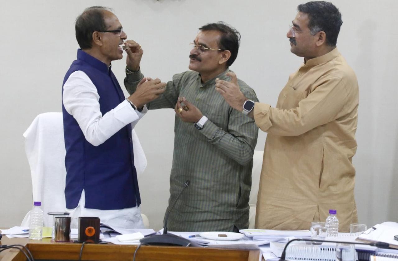 IND Vs PAk World Cup 2023: मध्यप्रदेश के भोपाल में सीएम हाउस में मुख्यमंत्री, केंद्रीय मंत्रियों, प्रदेश अध्यक्ष, संगठन मंत्री और पार्टी पदाधिकारियों ने वर्ल्ड कप में भारत की जीत का जश्न मनाया और एक दूसरे को मिठाई खिलाकर अपनी खुशी का इजहार किया।