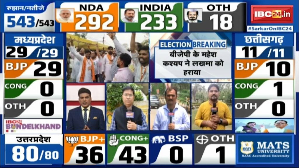 Home » State » Chhattisgarh Lok Sabha Election Results 2024: BJP on 10 seats of Chhattisgarh. one seat for Congress