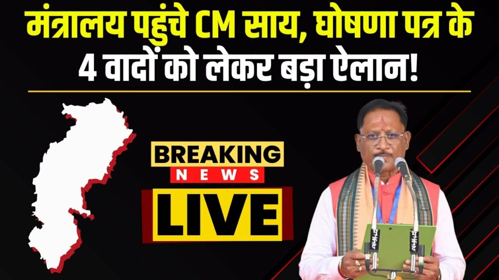CG Breaking News: मंत्रालय पहुंचे CM Vishnu Deo Sai | घोषणा पत्र के 4 वादों को लेकर कर सकते हैं ऐलान