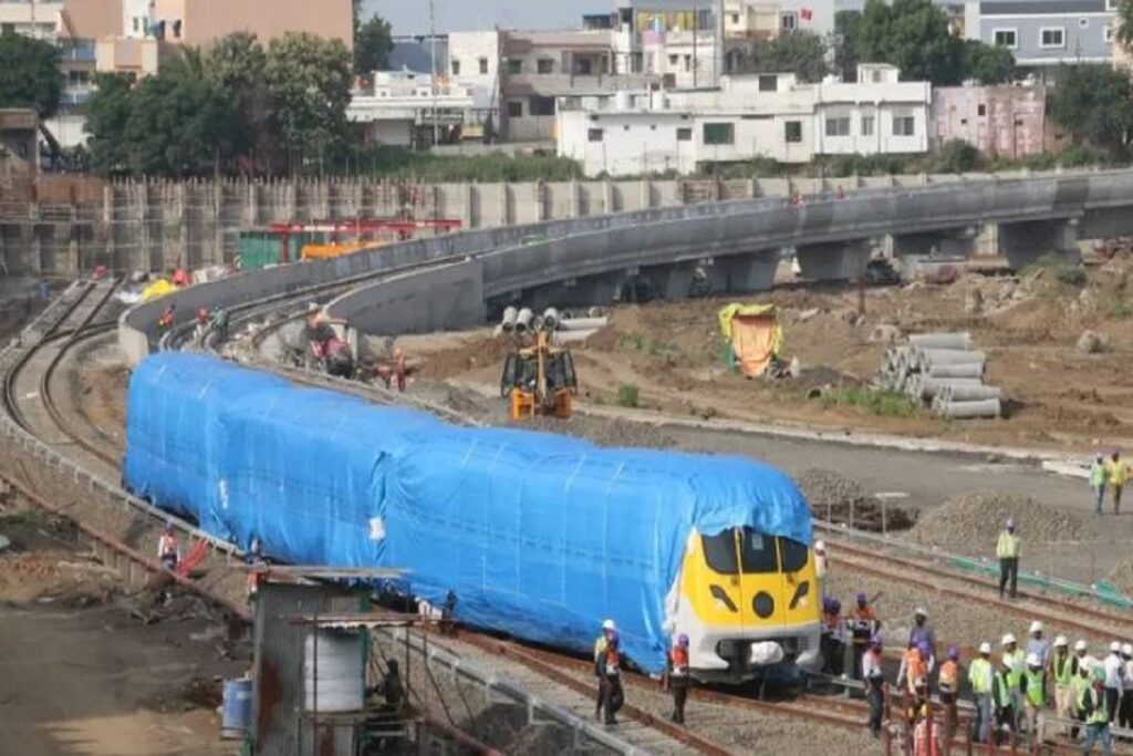 Metro Trial: इंदौर में शनिवार को मेट्रो ट्रेन का सेफ्टी ट्रायल रन लिया गया, जिस वक्त ट्रायल लिया गया उस वक्त बारिश हो रही थी। ये ट्रायल मप्र मेट्रो रेल कॉर्पोरेशन लि. (MPMRCL) के एमडी मनीष सिंह की मौजूदगी में लिया गया। गांधी नगर डिपो के इंस्पेक्शन बे लाइन (IBL) से मेट्रो धीमी गति से आगे बढ़ी। ट्रायल के दौरान ट्रेन का हॉर्न भी चेक किया गया।