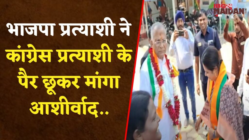 Home ┬╗ State ┬╗ Mahasamund: This interesting incident of election politics, BJP candidate touched the feet of Congress candidate.