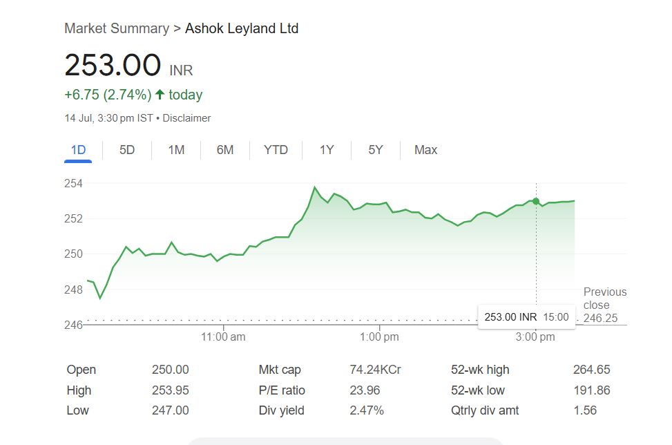 1 जनवरी 1999 को अशोक लीलैंड का एक शेयर मात्र 2.26 रुपये था, जो अब 253 रुपये के लेवल पर पहुंच चुका है। जो यह दर्शाता है कि शेयर ने अब तक निवेशकों को करीब 11,006% का रिटर्न दिया है। पिछले पांच वर्षों में कंपनी की मुनाफे की वृद्धि दर (CAGR) लगभग 54.6% रही है। बस और ट्रक निर्माण में माहिर अशोक लीलैंड की फंडामेंटल्स काफी मजबूत मानी जाती है।