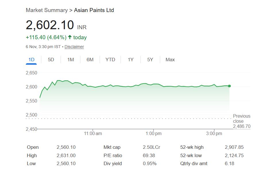 Asian Paints स्टॉक डेटा (6 नवंबर, 3:30 pm IST)