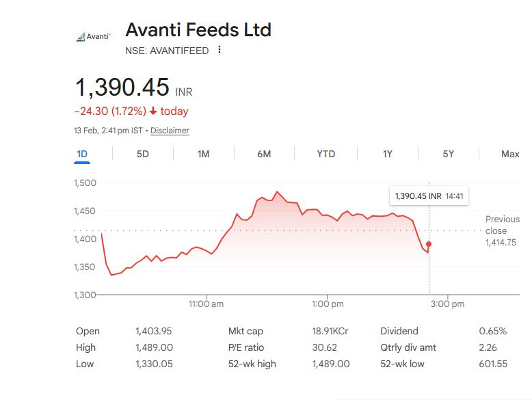 Avanti Feeds Ltd – स्टॉक की ताजा जानकारी (13 फरवरी 2026)