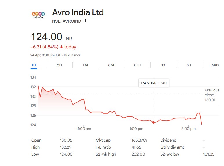 Avro India Ltd – शेयर विवरण (24 अप्रैल 2026)