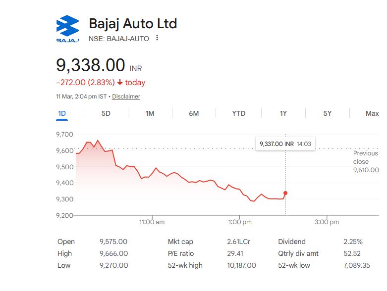 - इस फैसले के बाद Bajaj Auto Ltd के शेयर में तेज गिरावट आई।