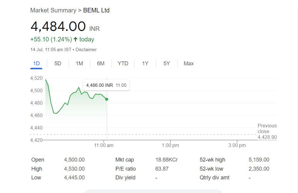 - बीईएमएल के शेयर सोमवार को ₹4530 के पार पहुंचे।