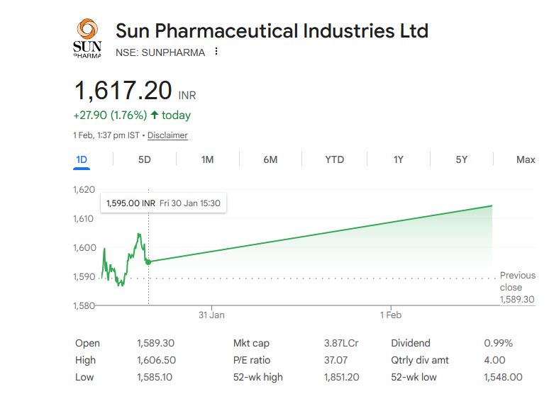 Sun Pharmaceutical Industries Ltd – शेयर डेटा (1 फरवरी 2026)