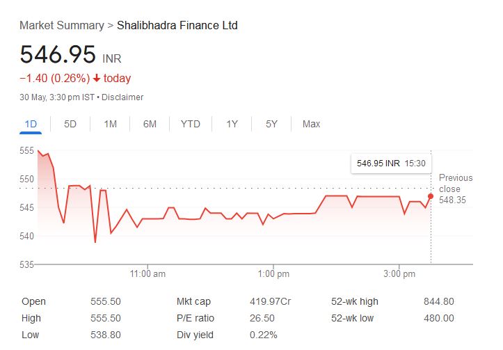 शुक्रवार को कंपनी के शेयर 0.26% गिरावट के साथ बीएसई पर 546.95 रुपये पर बंद हुए। 2025 में अब तक यह स्टॉक 20% से ज्यादा गिर चुका है और बीते 1 साल में इसमें 10% से अधिक की गिरावट दर्ज की गई है। इसके मुकाबले सेंसेक्स इस अवधि में 10% चढ़ गया है। लेकिन लॉन्ग टर्म परफॉर्मेंस बेहतर रहा है। बीते 5 सालों में Shalibhadra Finance के शेयरों ने 1164% का रिटर्न दिया है, जबकि इसी दौरान सेंसेक्स सिर्फ 151% ही बढ़ पाया।